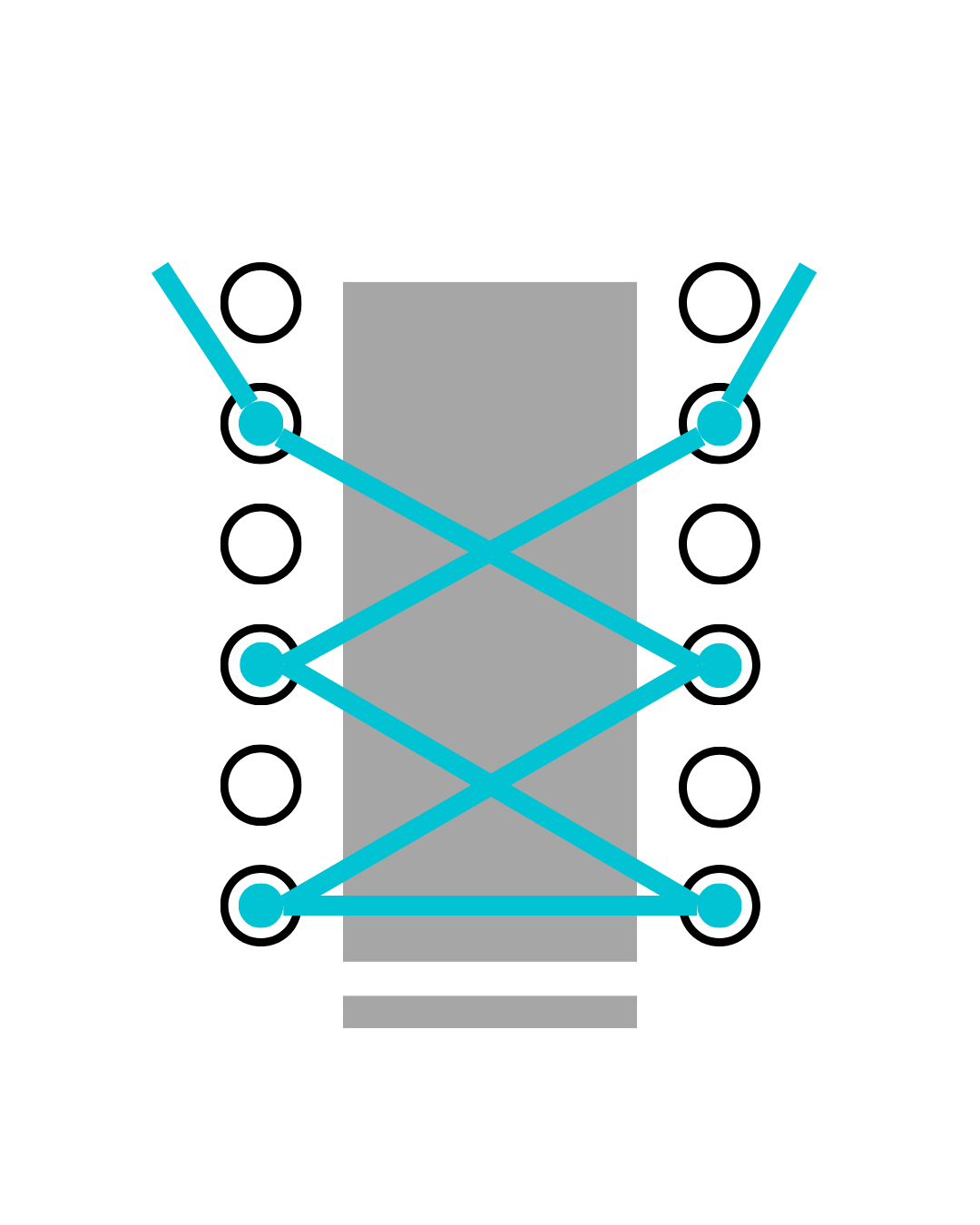cada agujero del mismo lado.